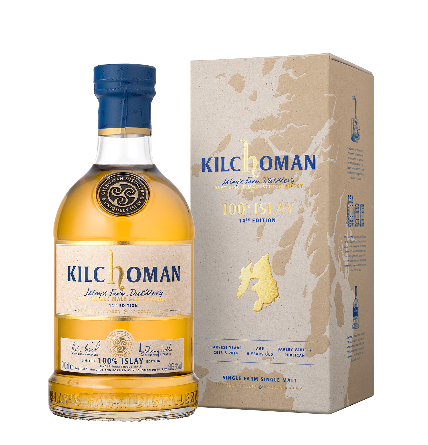 Kilchoman’s 100% Islay 14th Edition was distilled from our 2013 and 2014 barley harvests before being matured in selected bourbon and oloroso sherry casks for a minimum of 9 years.